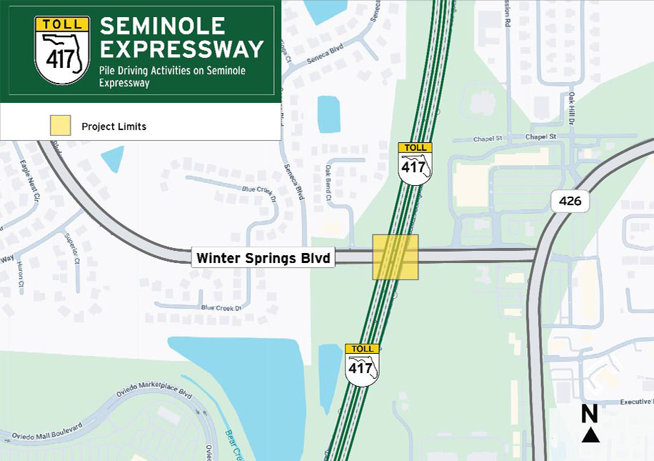 Pile driving activities will take place along Seminole Expressway/State Road (S.R.) 417 at the Winter Springs Road bridge, just north of Red Bug Lake Road (Exit 41) from January 5, 2026 through February 6, 2026. Work takes place daily between the h… Full details below