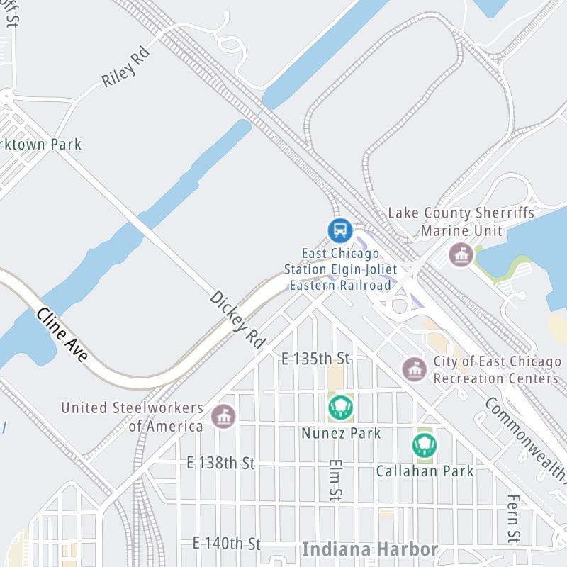 The static map seen here shows a only a segment of The Cline Avenue Bridge, at Pennsylvania/Michigan Avenues / Block Avenue. The entirety of The Cline Avenue Bridge can be seen in the fully-interactive map above, which includes linked markers. You may resize and reposition the interactive map to orient the road in relation to other landmarks.