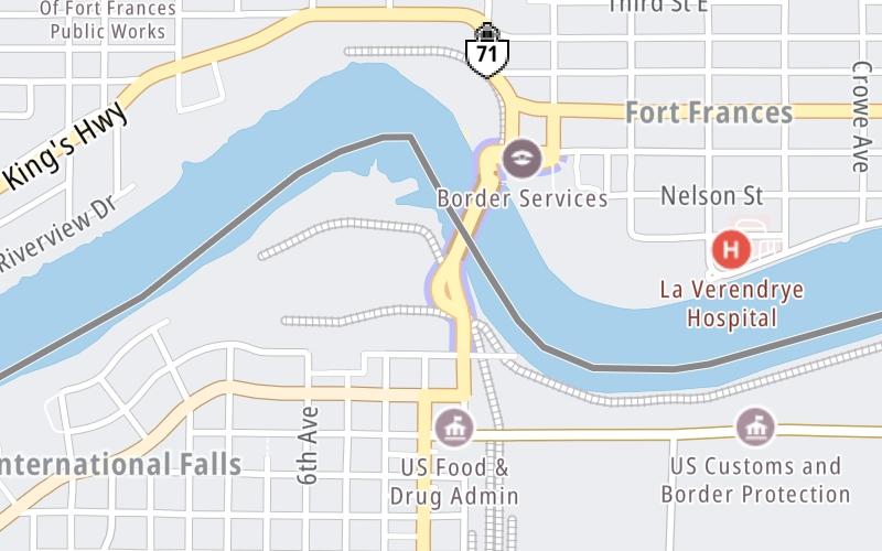 This junction is located in International Falls. NOTE: Customs and Border Protection checkpoint.
