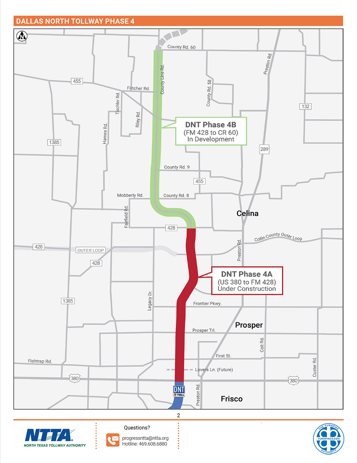 Between mile markers 31 and 38: The Dallas North Tollway is being extended north from US 380; Phase 4A is under construction from US 380 to FM 428. The Phase 4A extension is expected to open in the fall of 2027. Full details below